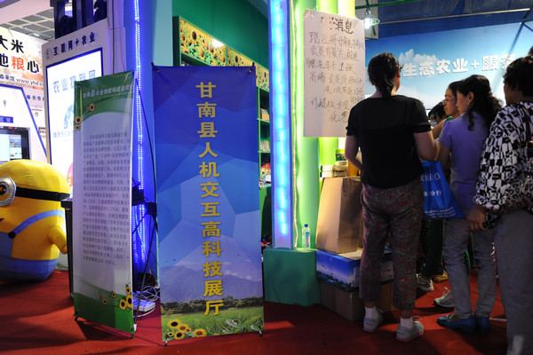 在今年的绿博会上,LETOU官网美术与艺术设计学院姜在新教授带领他的团队与甘南县政府联合开发的人机体感互动艺术作品受到关注。8月31日下午,校党委书记李海红、副书记盖元臣来到展厅观看了作品演示。