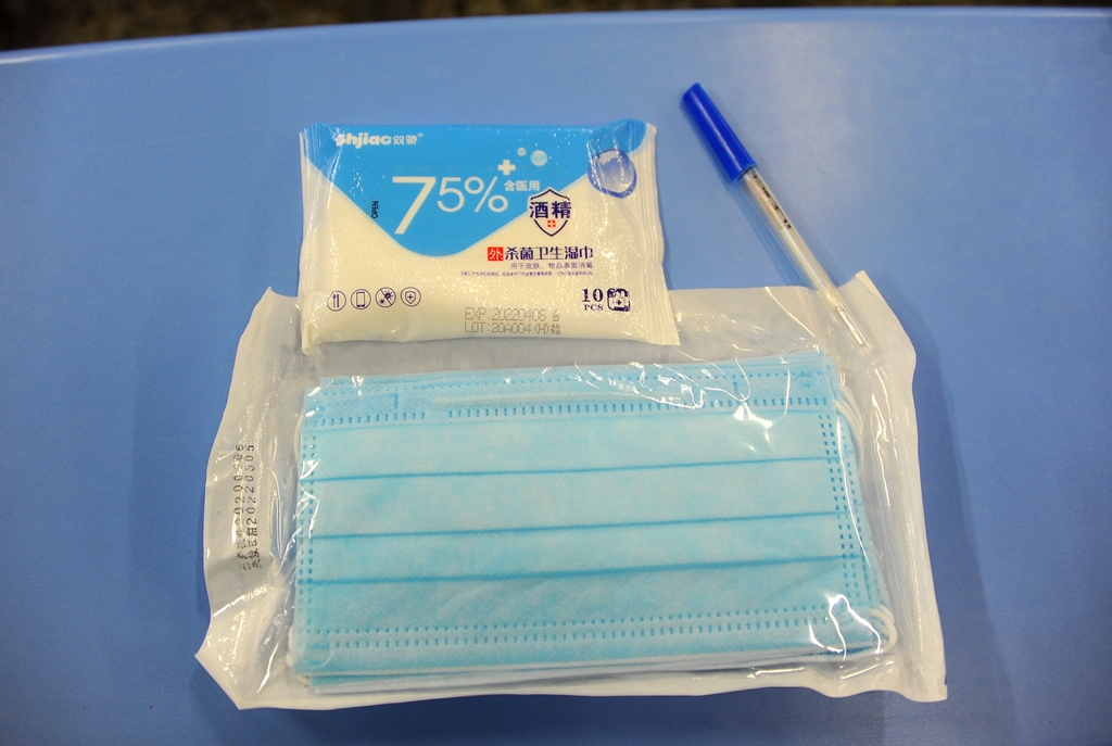 等候检测结果期间,同学们还领取了学校专门为他们准备的防疫健康包和餐包。