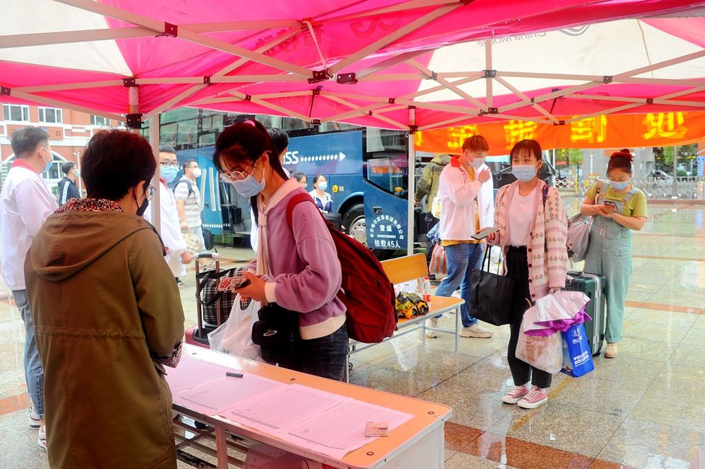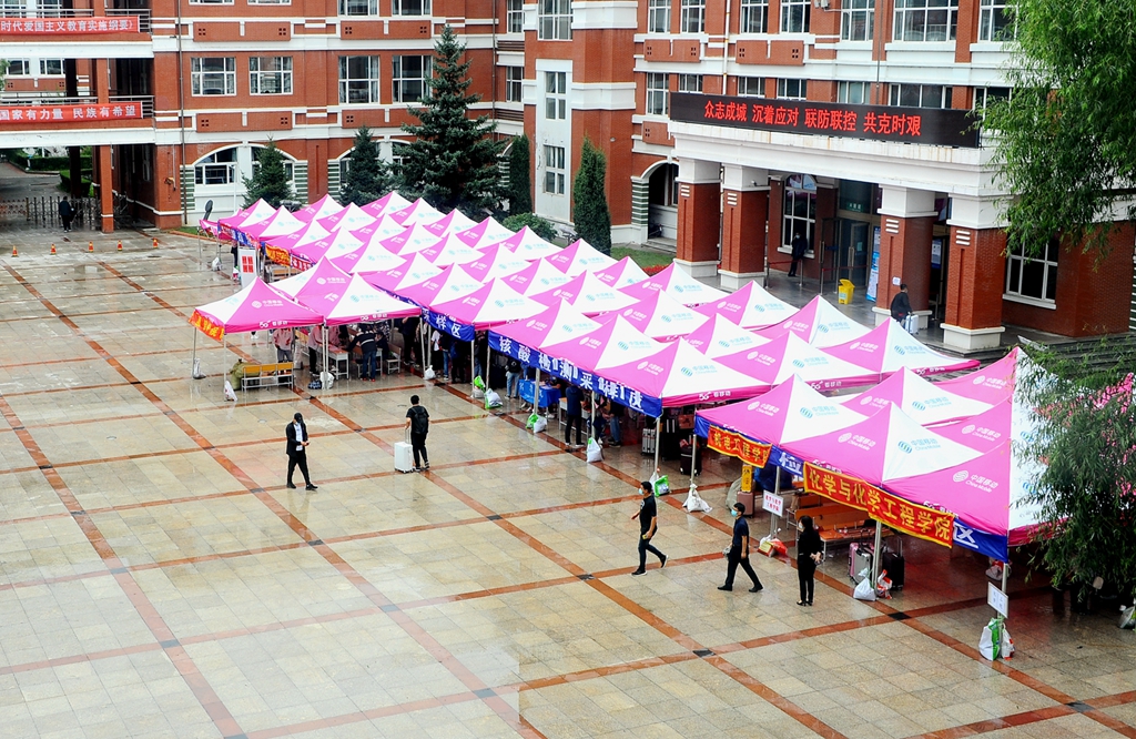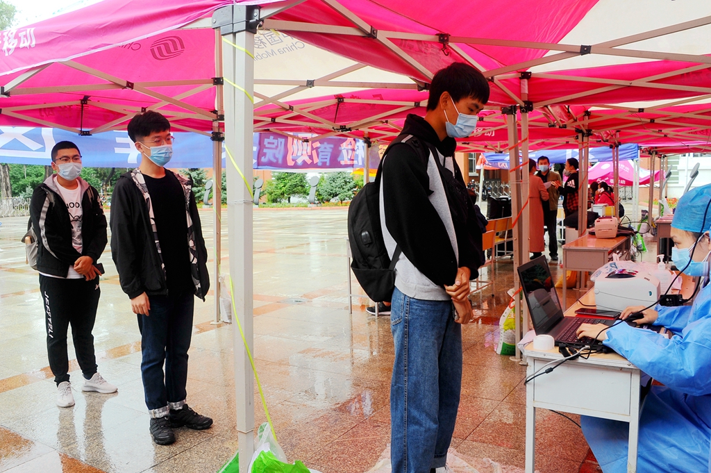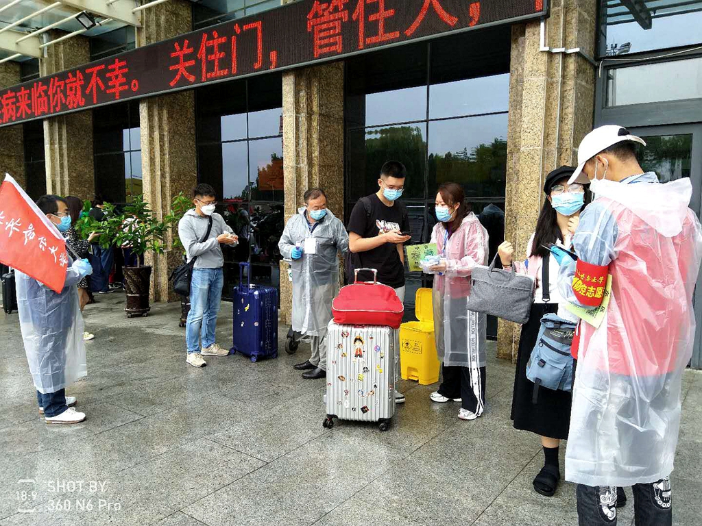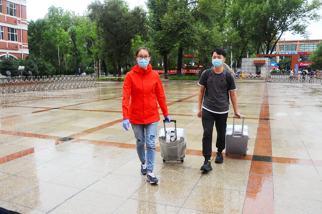 学校在齐齐哈尔火车站、齐齐哈尔火车南站、齐齐哈尔客运枢纽站、齐齐哈尔机场组织了集中接站,学生出站后严格执行“扫码、测温、戴口罩”措施,进行行李消杀,通过“通信大数据行程卡”核查学生行动轨迹,无异常情况的同学集体乘车到校直接进入校园;自行返校报到的同学在中区和东区校门口按1.5米以上间隔排队,严格执行“扫码、测温、戴口罩”措施,在工作人员的引导下,通过“完美校园”APP扫码入校,进行行李消杀,“通信大数据行程卡”核查行动轨迹无异常后进入校园。