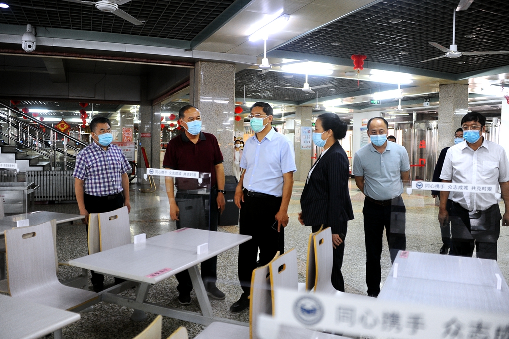 听取汇报后,董成一行详细查阅了学校疫情防控工作有关方案、记录、台账等实证材料,并实地查看了中区11号教学楼、学校卫生所、中区学生一食堂、洗浴中心和培训中心隔离区等场所。