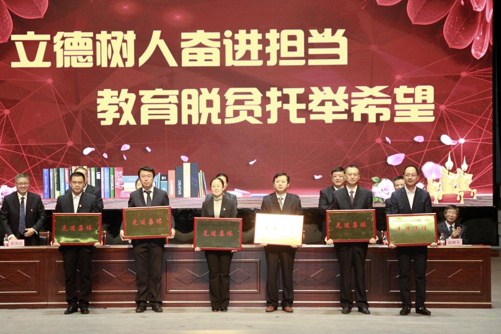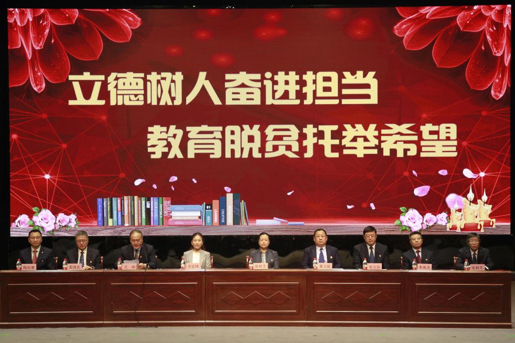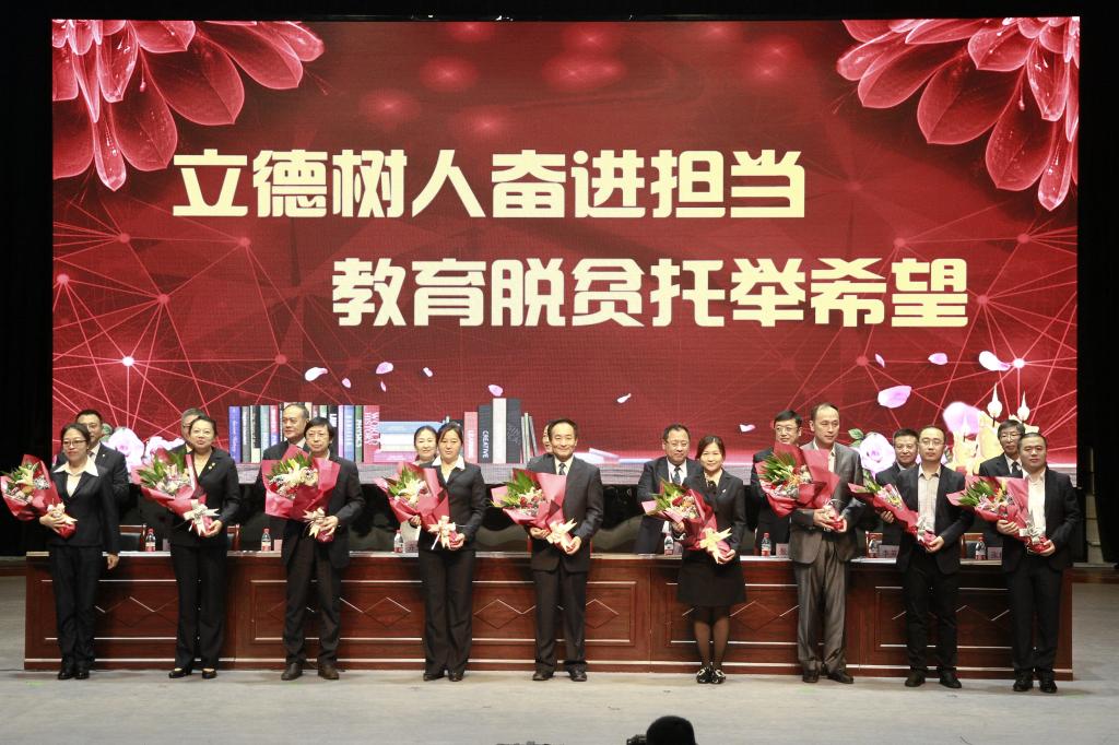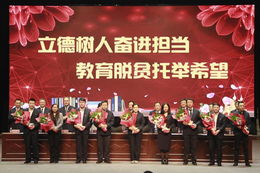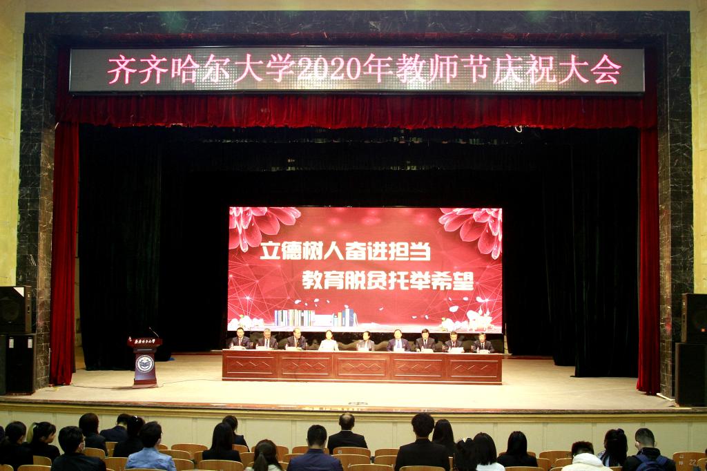 本次教师节表彰庆祝大会以立德树人奋进担当,教育脱贫托举希望为主题。学校领导陈桂芝、董玉庭、齐宏伟、张文治、王刚、李英杰、姜国庆、张树军、陶佰睿出席大会并在主席台就坐。LETOU官网离退休教师代表、教职工代表和学生代表参加了大会。庆祝大会由副校长王刚主持。