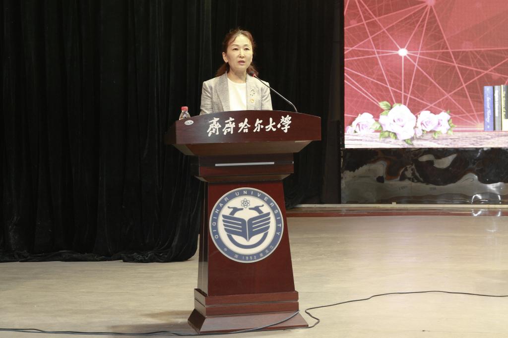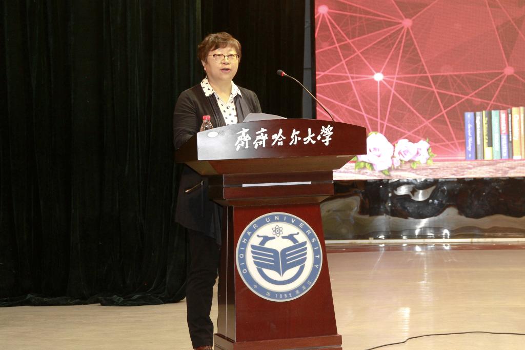 老教师代表、食品科学与工程一级学科带头人、龙江学者特聘教授、博士生导师刘晓兰教授在大会上发言。她用“四个坚持”与大家分享了自己从教近四十年的心得体会:一是坚持育人尽责,用仁德之心铺就成长之路,做学生品格铸炼的引路人;二是坚持育人以爱,用亲和之心架设教育之桥,做学生生活成长的引路人;三是坚持育人有法,用笃学之心搭建教学之梯,做学生终生学习的引路人;四是坚持敬业有道,用忠诚之心成就教育之基,做传承优良校风的引路人。刘晓兰教授表示,作为一名奋斗在教育科研一线的教师,我们要牢记习近平总书记的嘱托,始终不忘立德树人初心,牢记为党育人、为国育才使命,做学生的筑梦人,引导学生系好“人生的第一粒扣子”。相信在“养正毓德、精存自生”校训精神的激励下,在全体齐大人的共同努力奋斗下,齐大的明天会更加美好!