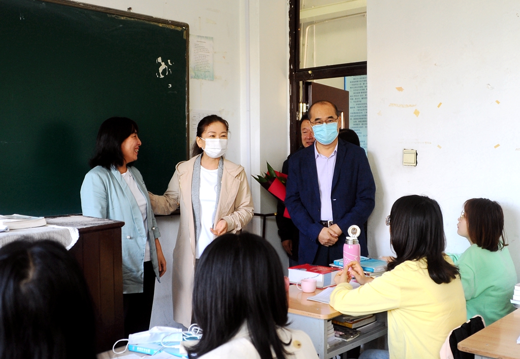 校长董玉庭来到25教617教室慰问哲学与法学学院教师文静