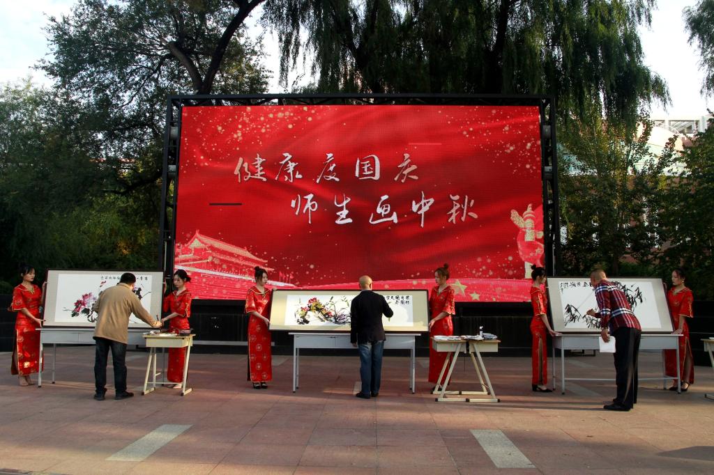 美术与艺术设计学院张充吕教授、郭锦龙教授、徐长春副教授在演出现场进行了书画创作表演,矫若惊龙、笔酣墨饱的书画功底,赢得了现场观众雷鸣般的掌声。