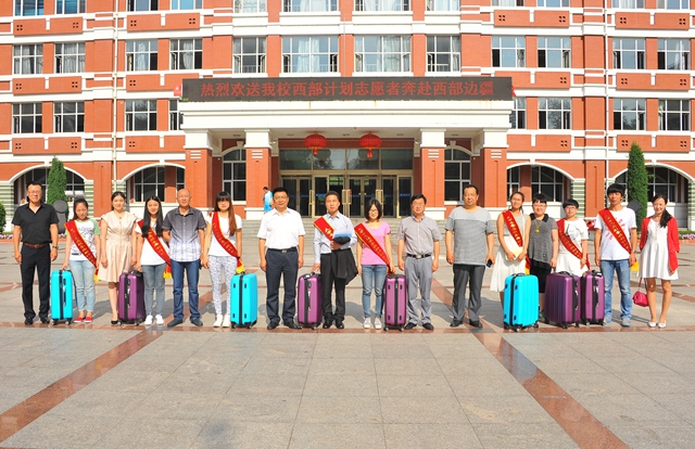 欢送仪式结束后,学校领导与2015年国家西部计划大学生志愿者亲切合影留念。