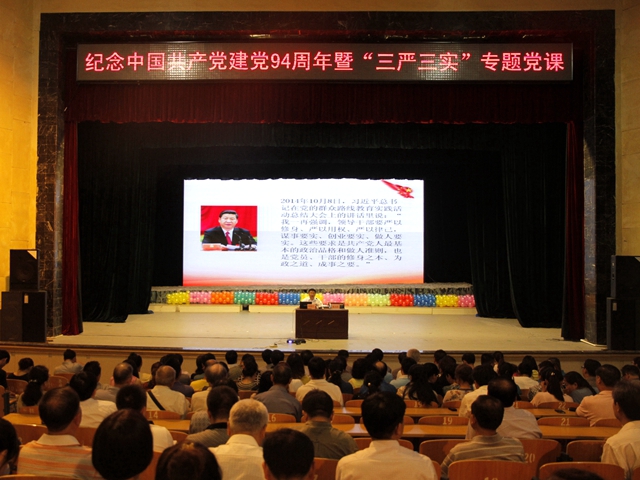 学校党委书记李海红为全体教工党员主讲题为《践行“三严三实”,做合格的共产党人》的专题党课。校领导盖元臣、张学军、郑喜群、邓启刚、王刚、李英杰、李敏义,校党委常委、组织部部长齐宏伟与全校教工党员共聚一堂,热烈庆祝党的生日,聆听“三严三实”专题教育党课。“三严三实”专题教育党课由校党委副书记盖元臣主持。