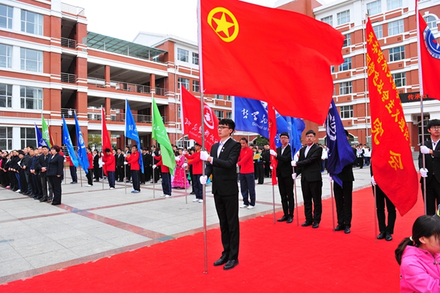 校党委书记李海红、校党委副书记盖元臣出席升旗仪式;各学院主管学生工作的党委书记、党委副书记、副院长、团委书记、学生代表,各级学生组织代表,以及少数民族学生代表近千人参加了此次升旗仪式。