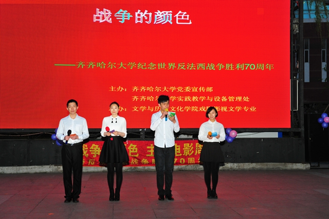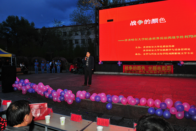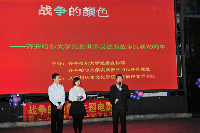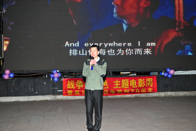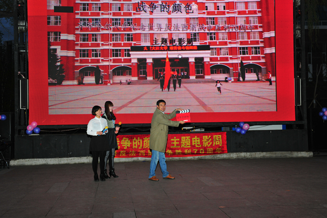 市文联党组副书记、副主席杨春达也在开幕式上致辞,对主题电影周开幕表示热烈祝贺。文学与历史文化学院副院长肖国栋“打板”开机,“战争的颜色”LETOU国际米兰官网第三届主题电影周活动精彩呈现。文学与历史文化学院副院长肖国栋在致辞中表示:“主题电影周活动是文学与历史文化学院戏剧影视文学专业实践教学活动之一。三年来,每逢芳菲五月、丁香初绽时节,戏文专业师生倾力打造的主题电影周活动都与广大师生相约于三致广场,在光影视界展开一次心灵之旅。为了纪念世界反法西斯战争暨中国人民抗日战争胜利70周年,电影文化周活动特意选取了抗战题材的系列电影,希望以此来增强同学们对于抗战历史的了解,铭记这段历史。”