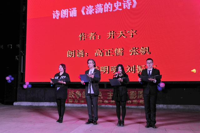 开幕式演出最后在由戏文专业同学自己创作、自己激情朗诵的诗歌《涤荡的史诗》中圆满结束。