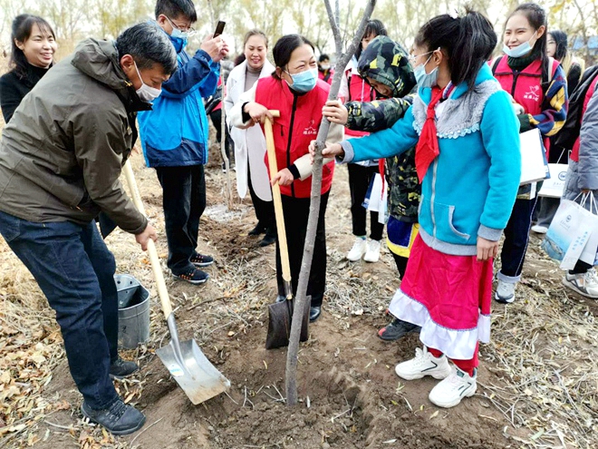 捐资助学仪式结束后,大家一同来到“鸿雁工程林”,共同种下了8棵紫叶桃李树,这8棵紫叶桃李树象征着爱与希望,寄寓着孩子们纯真的梦想,希望鼓励哈拉达族小学的孩子们和紫叶桃李树一道,在友爱的环境里茁壮健康成长。