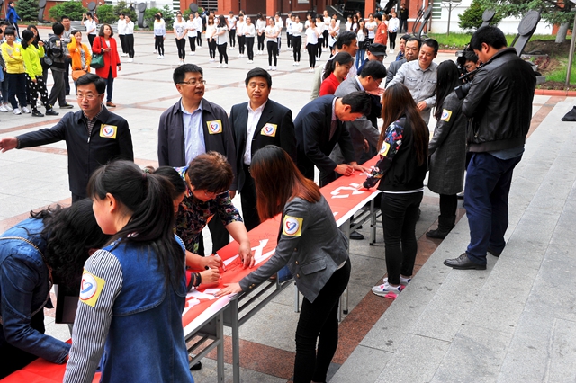出席仪式的校领导,部门领导以及各学院党委书记,党委副书记、副院长、师生代表等参加了现场签名活动,共同祝愿“点燃心灵之灯,照亮人生之路”的主题在我们的心灵深处生根、发芽,并在日后的生活学习中引导青年大学生认识自我、接纳自我,体验到自我存在的价值,朝着健康、积极的方向发展,成为一个拥有人格魅力的有为青年。