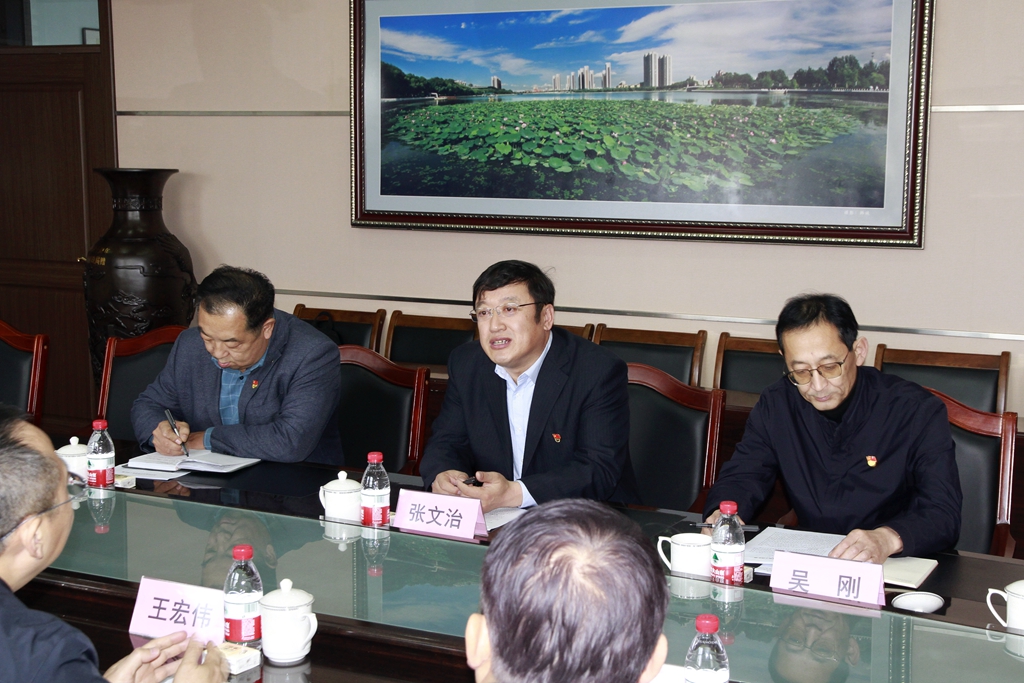 学校在办公楼504会议室召开调研汇报会。会前,校党委书记陈桂芝热情接待了王宏伟一行,希望调研组为学校离退休工作提出宝贵意见,帮助学校相关工作迈上新台阶。
