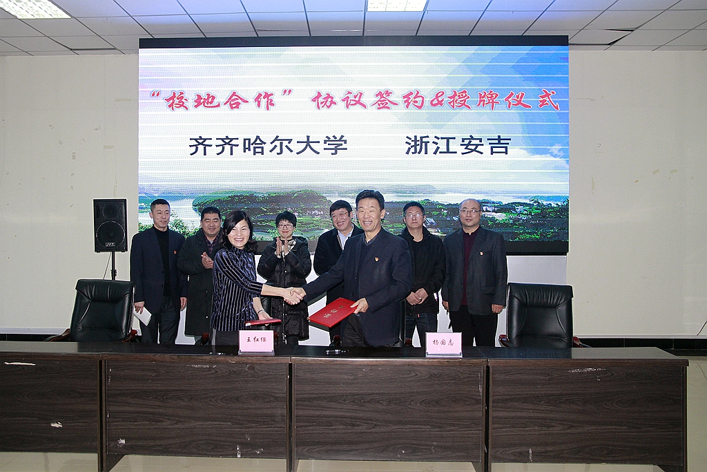 座谈会后,杨国志和王红缨分别代表双方签署了校地合作协议,并进行了授牌仪式。座谈会期间,相关学院领导与安吉县企业代表就人才引进等方面工作进行了深度交流。