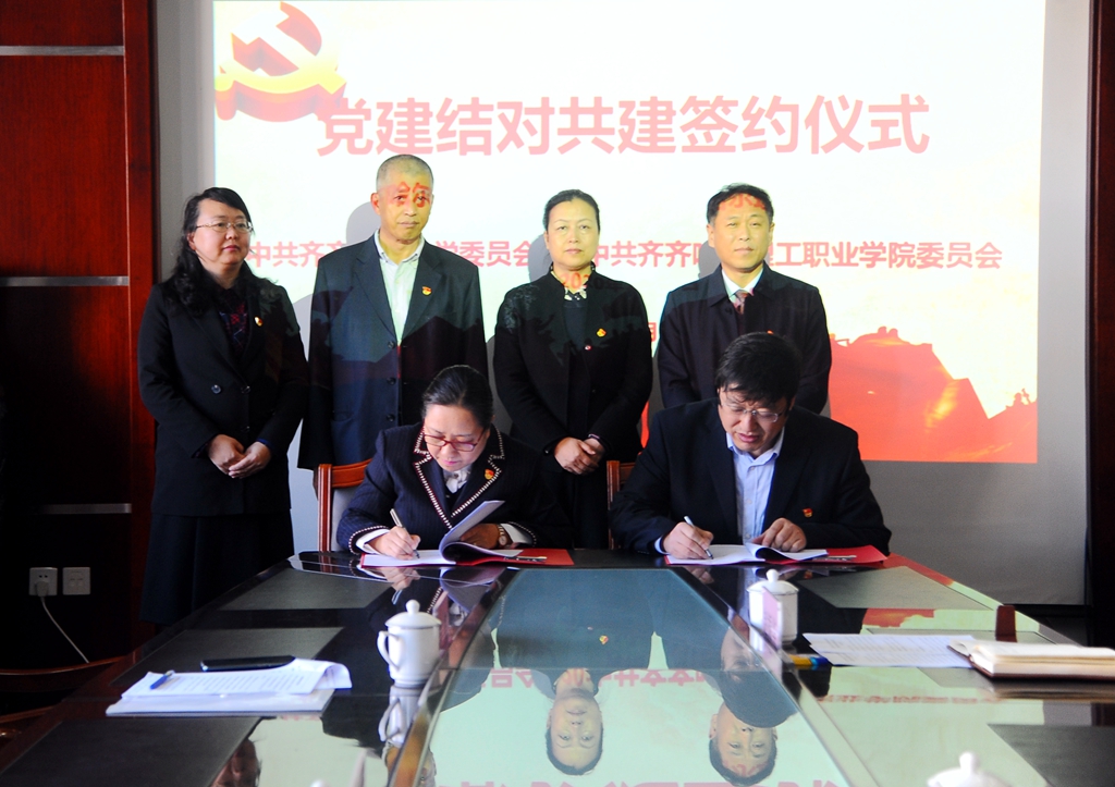 12月1日上午,LETOU国际米兰官网与齐齐哈尔理工职业学院党建结对共建签约仪式在学校办公楼504会议室举行。齐齐哈尔理工职业学院副理事长陈庆文,党委书记李虹,党委副书记、组织部长许颖;LETOU官网党委书记陈桂芝、党委副书记张文治、组织部副部长赵振华参加了签约仪式。签约仪式由张文治主持。