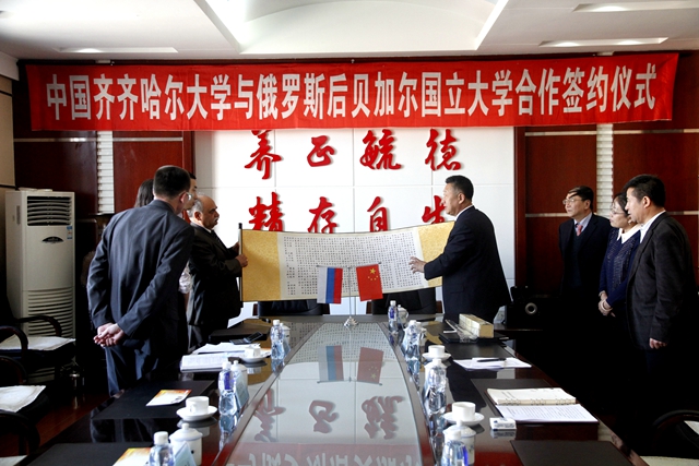 会上,马立群校长与伊万诺夫校长双方共同回顾了两校间交流、合作与互访的美好记忆,共同签署了校际间新的合作交流文件,并互赠了具有本校文化特色的纪念品。