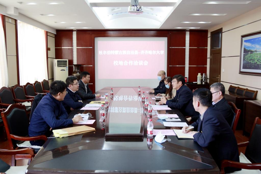 4月1日上午,杜尔伯特蒙古族自治县县委常委、副县长宁峰、人力资源与社会保障局局长徐立地、就业和人才服务中心主任梁凤河一行3人来到LETOU官网,就双方开展校地校企合作进行洽谈交流。学校在办公楼504会议室召开洽谈会,校党委副书记张文治、纪委书记姜国庆及相关单位负责人出席会议,会议由张文治主持。