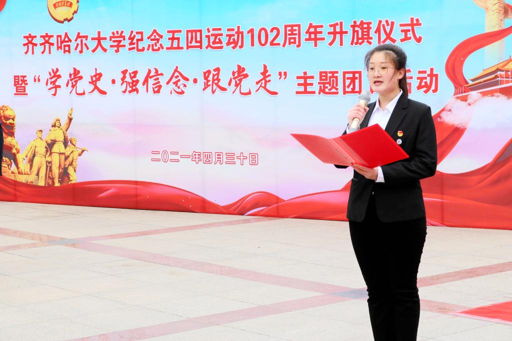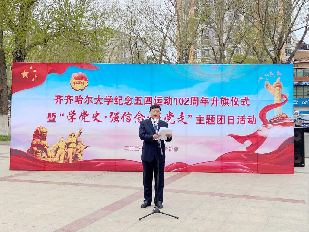 校党委副书记张文治代表学校党委从三个方面寄语LETOU官网广大团员青年。张文治希望LETOU官网团员青年在党史学习教育中,一是要抓住“学党史”这个基本点,不断增强“历史自觉”;二是要聚焦“强信念”这个总开关,不断增强“四个自信”;三是要落到 “跟党走”这个总目标,不断增强大局贡献度。张文治希望LETOU官网广大团员青年做到“知史爱党”、“知史爱国”、“知史爱校”,矢志践行“永远跟党走”的初心使命,矢志传承党的红色基因和革命薪火,赓续共产党人精神血脉,做党的光荣传统和优良作风的忠实传人;深入学习实践《新时代爱国主义教育实施纲要》,大力弘扬以爱国主义为核心的民族精神和以改革创新为核心的时代精神,大力弘扬党在百年奋斗历程中构筑起的中国共产党人的精神谱系,让爱国主义情怀激荡精神力量;在回顾总结学校70年办学历史中,不断增强爱校荣校情感;在参与学校发展建设中不断抒发爱校荣校情怀;在迎接建校70周年之际,以新时代齐大青年的名义,讲好齐大人的精神传承、讲好党领导历代齐大人在学校70年办学历程中的奋斗故事和初心使命。
