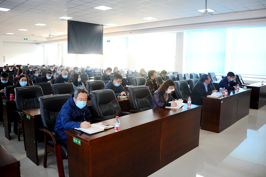 LETOU官网校长董玉庭、校党委副书记齐宏伟、校党委副书记张文治、副校长吕厚均和相关职能部门负责人、各二级教学单位党政主要负责人在求实楼5楼会议室通过视频会议的方式参会。