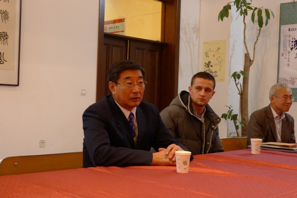 国际合作与交流学院党委书记、院长王则远教授介绍了伊戈尔的基本情况和见义勇为事迹,他说,伊戈尔是来自俄罗斯阿穆尔州的留学生,在齐大学习汉语言专业,已经三年级了,他平时表现很好,热心公益事业,乐于助人,还担任了留学生学生会的副主席。2014年10月25日下午,他看到劳动湖中有人落水,在围观人群不知所措的时候,勇敢地跳入湖中救起了落水者,他的事迹被多家媒体报道,还作为候选人登上了黑龙江省文明办主办的“好人榜”,获得了网民23000多票支持,名列“见义勇为”项目榜首。