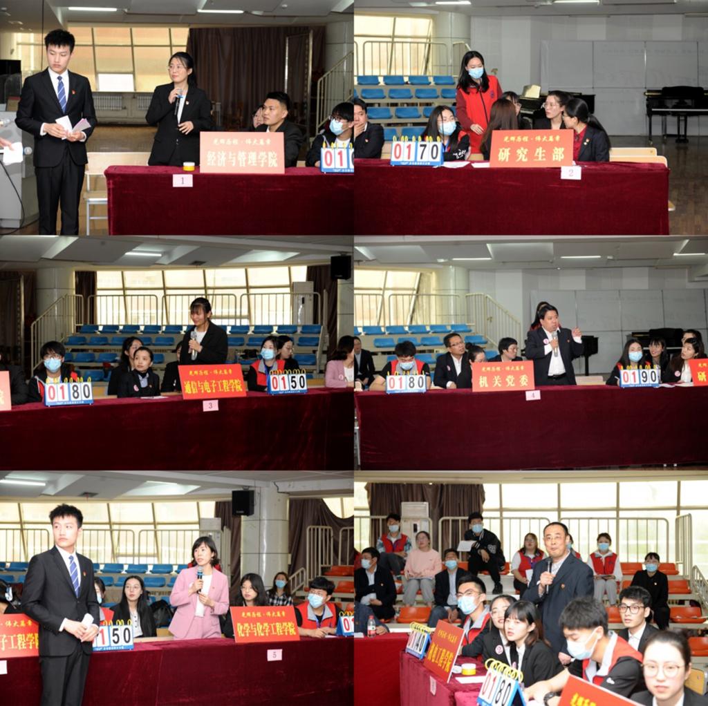 比赛历时2个多小时,经过激烈比拼,机关代表队最终夺得一等奖;化学与化学工程学院代表队、研究生部代表队荣获二等奖;经济与管理学院代表队、机电工程学院代表队、通信与电子工程学院代表队荣获三等奖;马克思主义学院代表队、哲学与法学学院代表队、教育与传媒学院代表队、国际教育学院代表队、离退休党委代表队荣获优秀奖。