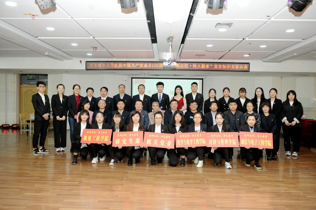 在全校党员中开展党史知识竞赛活动,是学校党委庆祝中国共产党成立100周年系列活动之一。本次党史知识竞赛自5月初启动以来,学校党委组织部科学指导,精心组织;学校团委、马克思主义学院、音乐与舞蹈学院、文学与历史文化学院、教育与传媒学院等部门(单位)密切配合、大力支持;各基层党委、直属党支部充分重视,认真落实,积极扩大活动覆盖面,保证活动参与率,确保本次活动圆满完成,全校28个二级党组织的28支代表队全部参与了初赛。通过党史知识测试、知识问答竞赛等多种形式精心选拔参赛选手,坚持把知识竞赛活动与开展党日活动结合起来,与开展党史学习教育结合起来,全面激发了广大师生立足新时代、奋力新作为、创造新业绩的热情。离退休党委克服困难,积极组织老党员参赛,84岁高龄的离休第一党支部书记党文魁老师出现在初赛、复赛现场,身先士卒、率先垂范“学党史悟思想、守初心跟党走”的责任感和使命感,深深感染带动着现场的参赛选手和观众,也成为本次比赛的一道靓丽风景。
