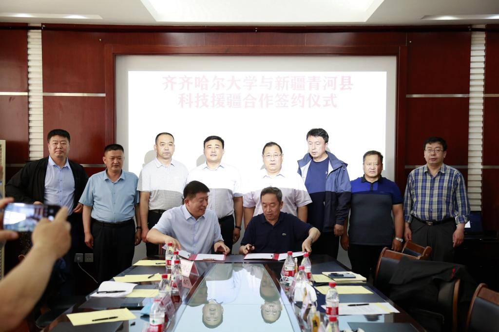 校长董玉庭,副校长吕厚均,青河县委副书记代忠良,青河县委常委、县政府副县长张相海,青河县农业农村局党组书记蒲培飞,青河县国家农业科技园区管委会主任王旭明,青河县农业农村局农技推广中心研究员管建华等出席会议,学校相关部门及学院领导老师和青河县企业代表参加会议,会议由科研处长荆涛主持。