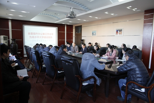 本次会议的主题是:“全面提升办公室工作水平,为高水平大学建设服务”。学校办公室主任张德庆从职能、要求、若干思考、现阶段几项重点工作等四个方面对办公室系统工作进行了阐述。