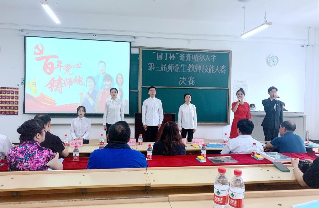 整个大赛严格按照比赛规程进行,以确保赛事的客观公正,并力图达到“功在课前,效在课中,思在课后”的效果。比赛中,参赛的选手们都表现出了良好的专业素养和演讲能力,等待比赛结果期间,教师教育学院学生刘子臻、杨雅琪等人带来诗朗诵《百年党心铸师魂》,充分展现了齐大青年青春心向党、建功新时代的使命担当和奋进热情。