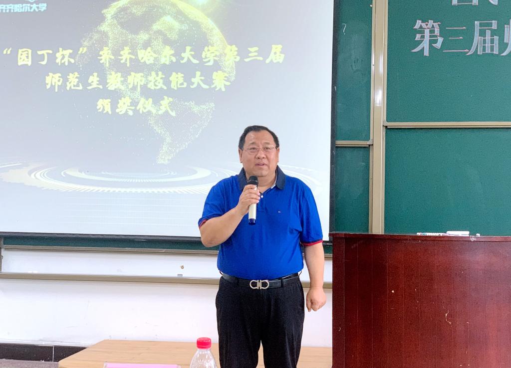 校长董玉庭出席大赛颁奖典礼,并为获得优秀指导教师称号的教师颁奖。