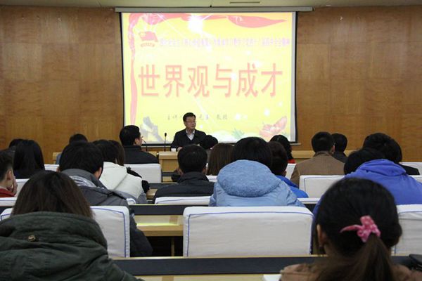 为在全校团员青年中深入贯彻党的十八届四中全会精神,2014年10月29日,依托共青团组织践行社会主义核心价值观第六次集体学习活动,校团委邀请校党委副书记盖元臣为LETOU官网全体专兼职团干部、团学骨干代表做了《世界观与成才》的专题讲座。
