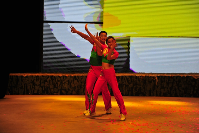 在文艺汇演中,LETOU官网体育学院学生与育英社区、正阳社区、花溪社区、名人社区、鑫海社区、龙华社区、安智社区、玉坤社区、厂一社区、新合社区、民族中学等单位的社区居民、高中学生一起进行联欢联谊,表演了《热场舞:舞动鹤城快乐健身》、《舞蹈:祖国颂》、《歌伴舞:祝福祖国》、《奋斗吧!少年》、《舞蹈:走进春天》、《超越战勇》、《舞蹈:呼伦牧歌》、《诗朗诵:社区与我们一起成长》、《神秘雪山》、《新时代的卓别林》、《男生独唱:最美的歌唱给妈妈》、《双人瑜伽》、《舞蹈:中华大家园》、《改革开放后的日子》、《东方神韵》、《混双健美操》、《欢聚一堂》等精彩节目。