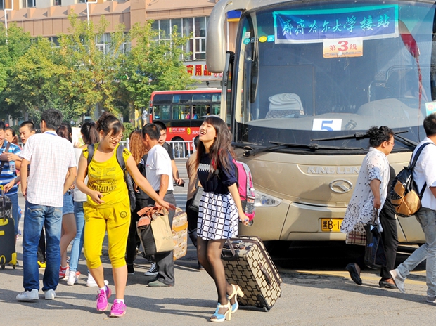 8月30日,从早晨6:00直至18:00,校党委书记李海红,校长马立群,纪委书记张学军,常务副校长郑喜群,副校长吕晓辉、李英杰,工会主席李敏义等校领导分别深入到火车站和东、中、西区迎新接待点、学生寝室看望入学报到的2014级新生及其家长,检查指导迎新工作,把关爱与温暖传达给刚刚入学报到的新生和家长。