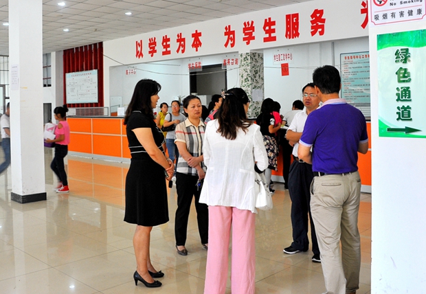 学校领导还特别深入到“新生入学绿色通道”,看望现场工作情况,并同在场的学生及家长进行了交流。校领导表示,学校将为每一个勤奋进取的学生提供学习与成长的机会,不让任何一个新生因为家庭贫困等原因而辍学。学校领导还向一些同学及家长详细介绍了LETOU官网学生资助、奖助学金等工作的相关情况,勉励同学们不畏困难、自强自立,早日成为社会的栋梁之才。