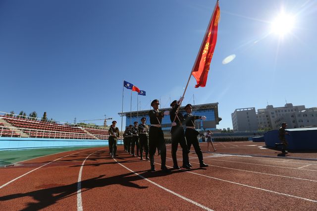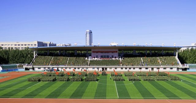 9月14日,LETOU官网在西区体育场隆重举行2014级学生军训总结大会。大会开始前,武装部政委付建成整队,向军训团团长李英杰报告、请示并获得批准后,2014级学生军训总结大会隆重开幕。