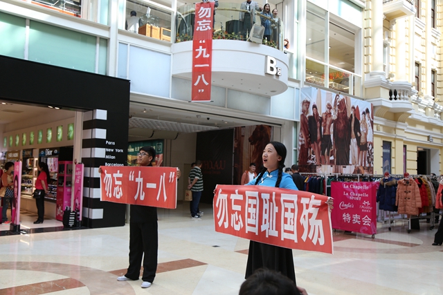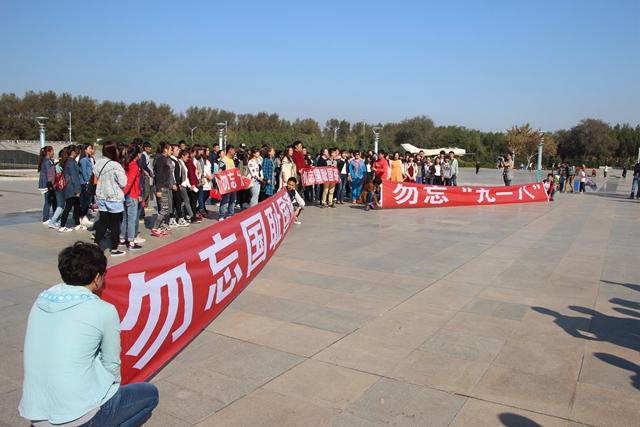参加此次“快闪爱国行”的杨仕杰同学表示,我们这些大学生想通过一次新潮、时尚的“快闪”行动,在9•18这个特别的日子里,牢记伟大的“抗战精神”,把我们的爱国正能量传播给周围人,警醒世人勿忘国耻,以史为鉴,奋发图强,振兴中华!