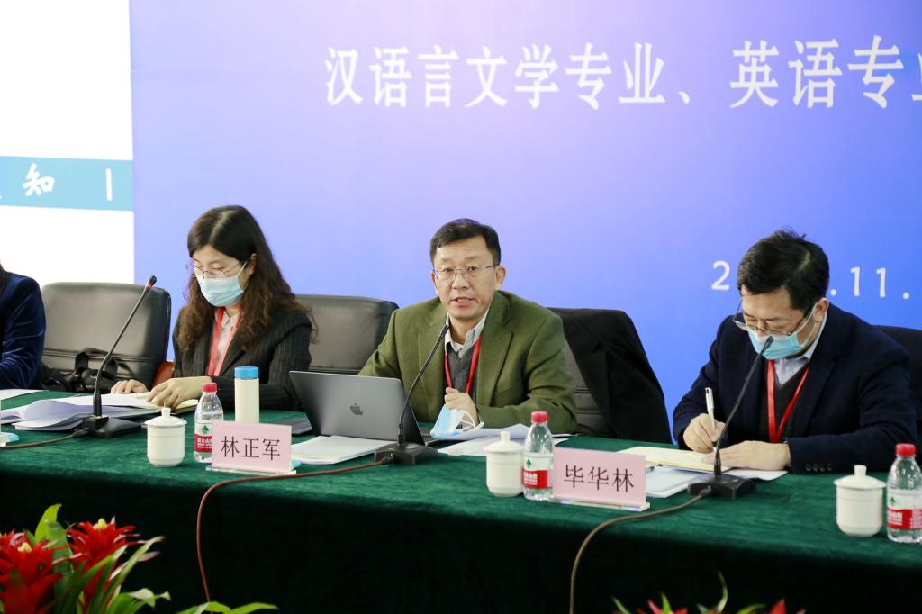 随后,汉语言文学、英语和数学与应用数学专业负责人先后对自评报告作了补充说明。