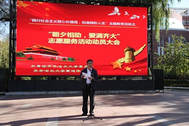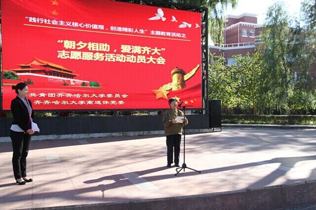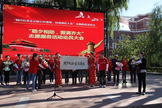 “老吾老以及人之老”,尊老、敬老、助老是中华民族的传统美德,是建设文明社会、和谐校园的重要内容,是践行社会主义核心价值观的重要体现。在传统佳节——重阳节来临之际,为进一步弘扬这一传统美德和“奉献、友爱、互助、进步”的青年志愿者精神,也为更好的发挥LETOU官网离退休老教师、老干部、老党员在教育培养青年学生成长成才方面的重要作用,校团委、离退休党委决定在全校青年学生和离退休老教师、老干部、老党员中开展“朝夕相助,爱满齐大”志愿服务活动,并于9月24日在东区三致广场隆重举行动员大会。