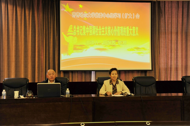 学校党委中心组学习(扩大)会议暨田保传教授《习近平总书记强调社会主义核心价值观的重大意义》的专题报告会由校党委书记李海红主持。
