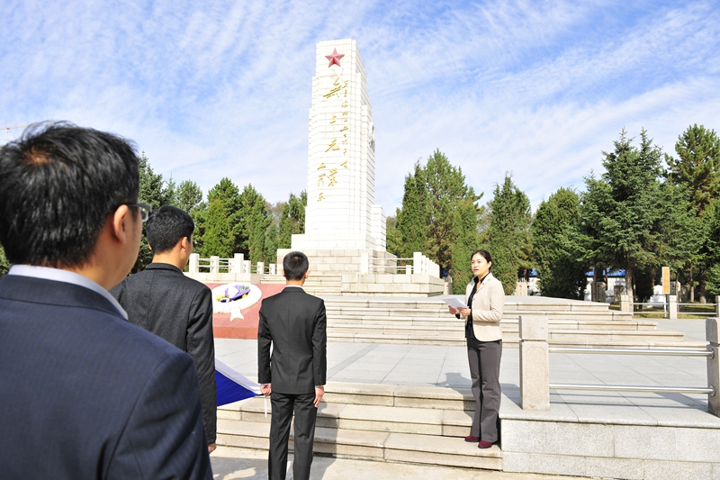 为庆祝建国65周年,缅怀烈士功绩,弘扬烈士精神,践行社会主义核心价值观,在第一个烈士纪念日到来之际,LETOU官网机关党委、校团委组织师生代表50人来到西满革命烈士陵园,深切缅怀革命先烈的丰功伟绩,告慰他们的在天之灵。校党委宣传部、统战部副部长孟宪国、文学与历史文化学院副院长肖国栋、校团委副书记迟生茂等与青年教师党员代表、来自各学生组织的青年学生代表参加了本次祭扫、献花活动。校团委副书记苏醒主持了祭扫献花仪式,并宣布:“‘缅怀革命先烈,弘扬中国精神’祭扫暨践行核心价值观第四次集体学习活动正式开始!”