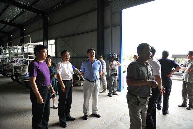 (考察团了解农机集中存放情况)