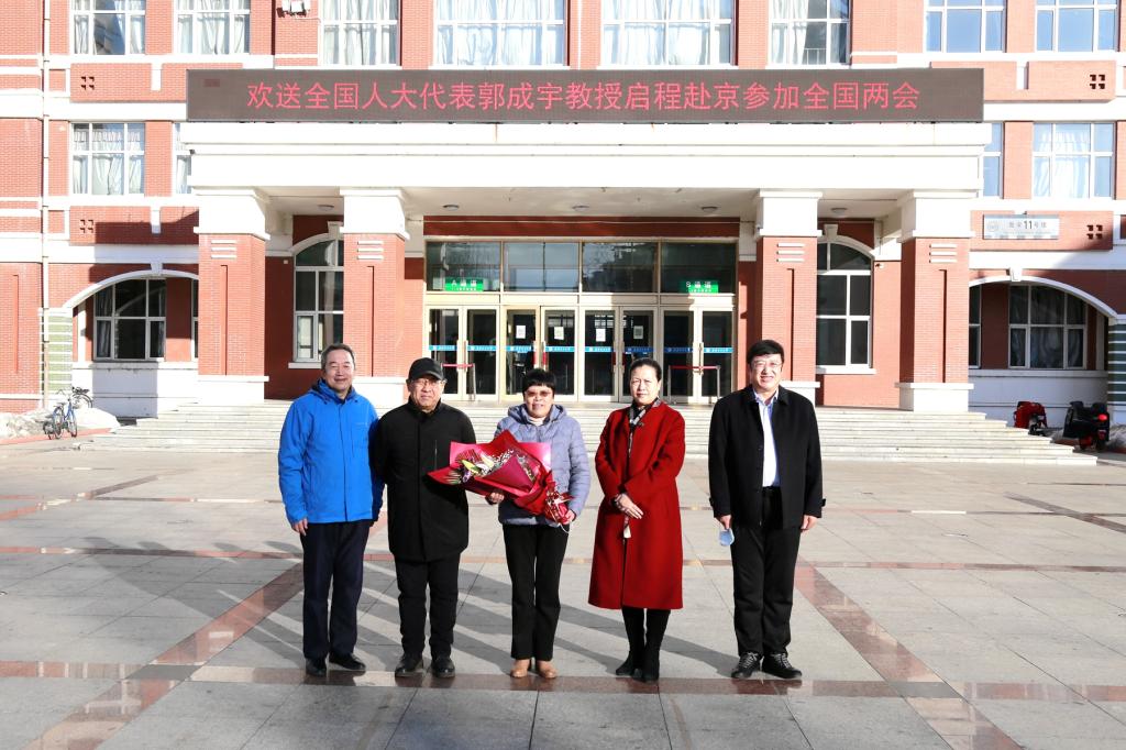 2月28日下午,全国人大代表、LETOU官网食品与生物工程学院郭成宇教授启程赴京参加十三届全国人大五次会议。校党委书记陈桂芝、校长董玉庭、校党委副书记张文治、副校长吕厚均及相关部门领导在中区广场为郭成宇教授送行。