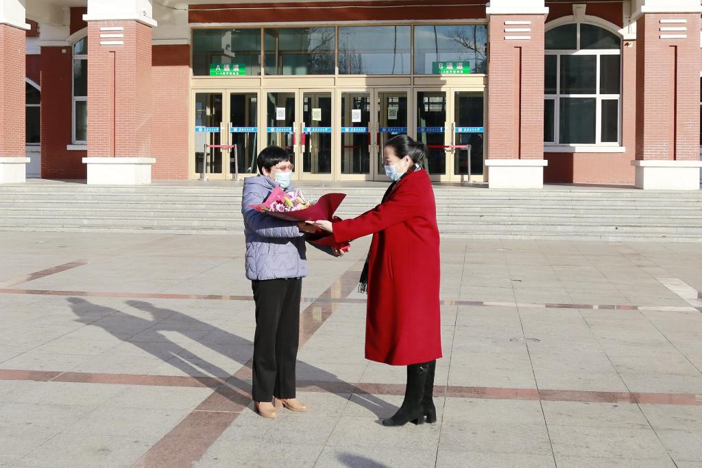 陈桂芝代表全校师生员工向郭成宇教授表示祝贺和慰问。她说,十三届全国人大五次会议是全国人民政治生活中的一件大事,郭教授肩负着全校师生的重托和期盼,职责神圣、使命光荣。希望郭教授牢记使命职责,以饱满的政治热情和良好的精神状态,依法履行代表职责,展示齐大人和鹤城人的良好形象,为大会作出积极贡献。