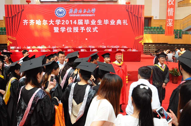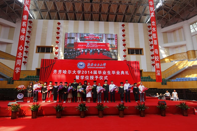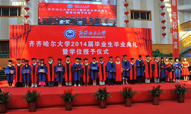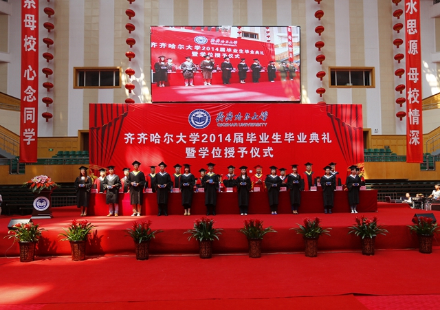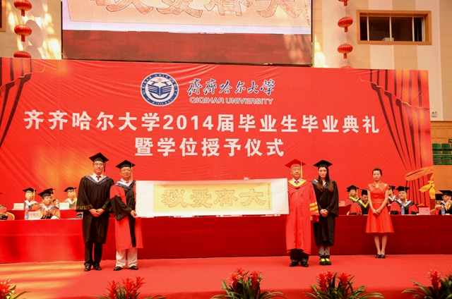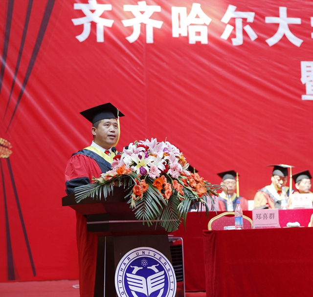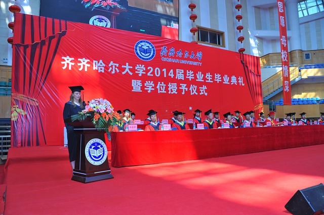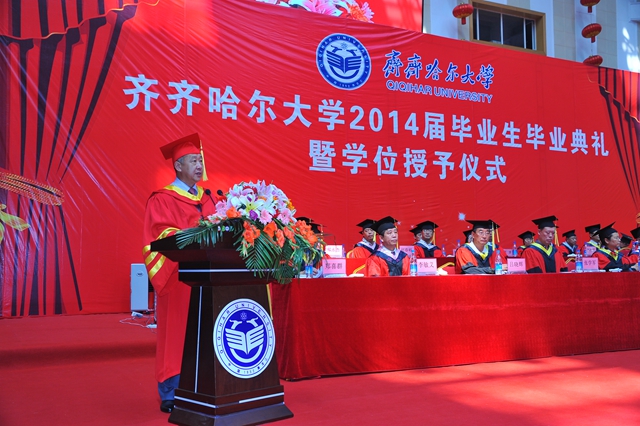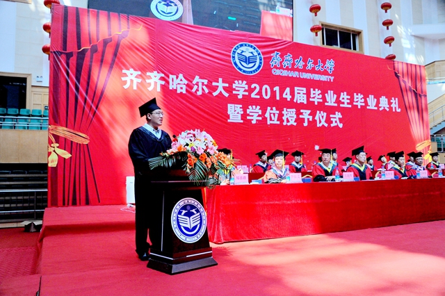 马立群校长表示,同学们是学校发展的见证者,更是推动学校发展的参与者,与学校一同走过的岁月里,正是学校各项事业快速发展、欣欣向荣、蒸蒸日上的时期。2010年,我们以高度的文化自觉开启了黑龙江省西部地区文化传承与发展产学研基地建设,彰显了齐大人的责任和担当。2011年,我们登上了全国文明单位的最高荣誉榜,以昂扬向上的精神风貌展示了齐大人的执着与梦想。2012年,我们举办了建校60周年校庆庆典,提升了学校的社会影响力和美誉度。2013年,我们胜利召开了第一次党代会,扎实开展了党的群众路线教育实践活动。2014年,我们全面开展“教育思想大讨论活动”,奋力推进高水平大学建设跨越发展。几年来,你们与学校共同成长,共同进步,学校发展所取得的成绩中,有你们的努力和贡献,汇聚了你们的智慧和力量。作为校长,我代表学校对你们表示衷心的感谢!