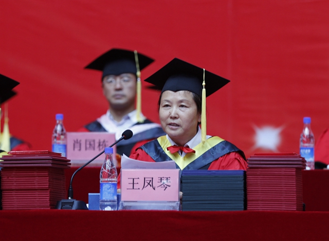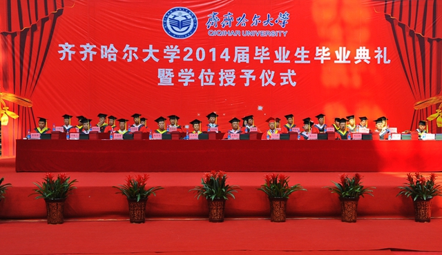校领导李海红、马立群、王凤琴、盖元臣、张学军、郑喜群、邓启刚、王刚、吕晓辉、李英杰、李敏义出席毕业典礼并在主席台就坐。在主席台就座的还有学校学位委员会成员及各学院院长。
