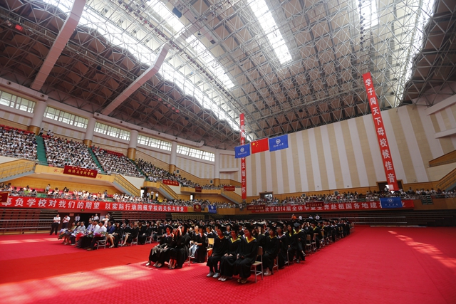 从青涩懵懂的少年到睿智成熟的青年,一路走来,2014届毕业生用勤奋、拼搏和执着演绎着人生的精彩、书写着青春的传奇。今天的毕业典礼后,他们带着母校两万余名师生的深深祝福扬帆远航,开启人生新的征程。学校希望2014届毕业生牢记学校领导、老师的殷切嘱托,秉承母校“养正毓德、精存自生”的校训精神,留真情于母校,献才华于社会,爱国荣校,与时俱进,奋发有为,努力成为有益于祖国、有益于人民、有益于民族、有益于母校的栋梁之才,筑梦走人生。母校师生将与全体校友一起携手,凝神聚力,共谋发展,奋力建设有特色高水平教学研究型综合大学,与广大校友一道为实现中华民族伟大复兴的“中国梦”贡献心血、智慧和力量。