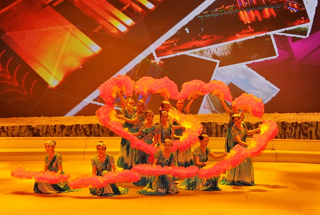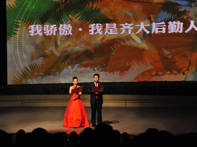 “多彩齐大梦 光荣后勤人”文艺演出在开场舞蹈《中国梦》中拉开序幕,14个综合文艺节目全部由后勤处职工自编自导自演。