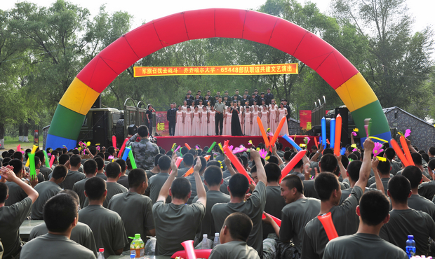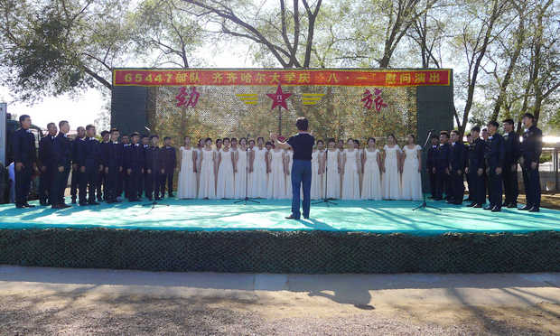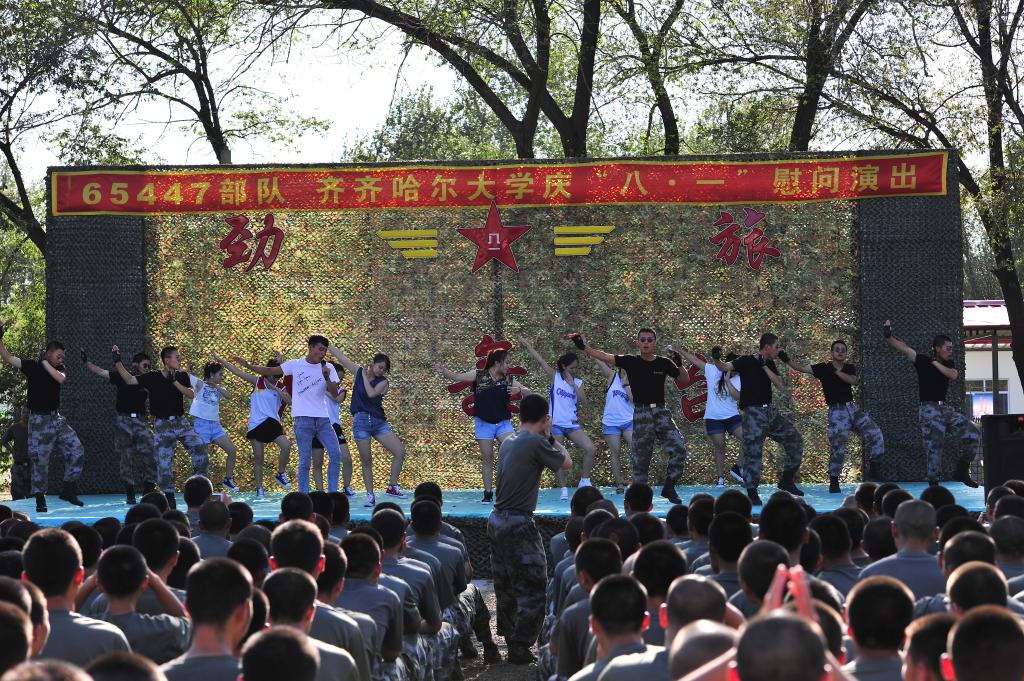 音乐与舞蹈学院的师生与部队官兵共同进行了文艺演出,音乐与舞蹈学院的师生先后表演了合唱《草原夜色美》、独唱《我的好兄弟》、《军营飞来一只百灵》、《好男儿就是要当兵》等一批特色鲜明的军旅歌曲,受到部队官兵的欢迎,部队官兵也一同登台表演了精彩的节目。