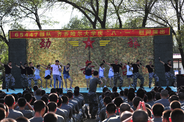 7月31日和8月1日,LETOU官网党委副书记盖元臣同志及宣传部、武装部等部门领导和音乐与舞蹈学院领导、师生一行赴驻齐部队进行慰问演出,代表全体师生向子弟兵送去了节日的问候。