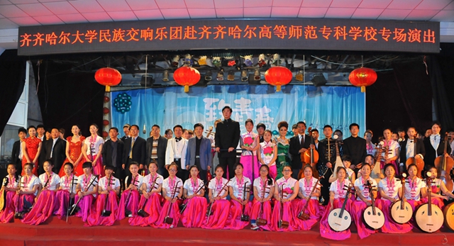 5月11日晚,受黑龙江省教育厅、文化厅、财政厅指派,LETOU国际米兰官网民族交响乐团赴齐齐哈尔高等师范专科学校举行“高雅艺术进校园”专场演出。齐齐哈尔高等师范专科学校校长薛宝林与师生一起观看了演出。