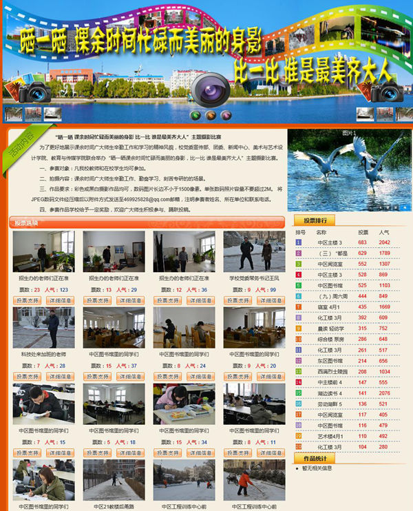 参加活动的所有图片在专题网站上进行了展示,同时还设置了网络投票,师生可以在线为支持的人“点赞”。